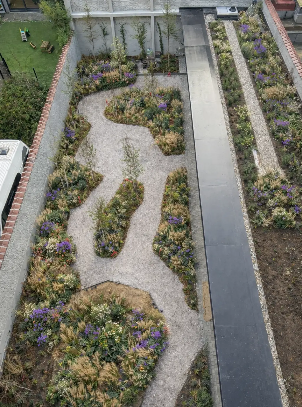 Onze missie beperkt zich niet tot esthetiek. We willen een positieve milieu-impact hebben door arme of biodiverse ruimtes te rehabiliteren. In 2024 hebben we meer dan 12.000 planten geplant, wat bijdraagt aan het verrijken van de bodems, het bevorderen van de bestuiving en het creëren van schuilplaatsen voor de lokale fauna. Elk project is een kans om de natuur toegankelijker en levendiger te maken..