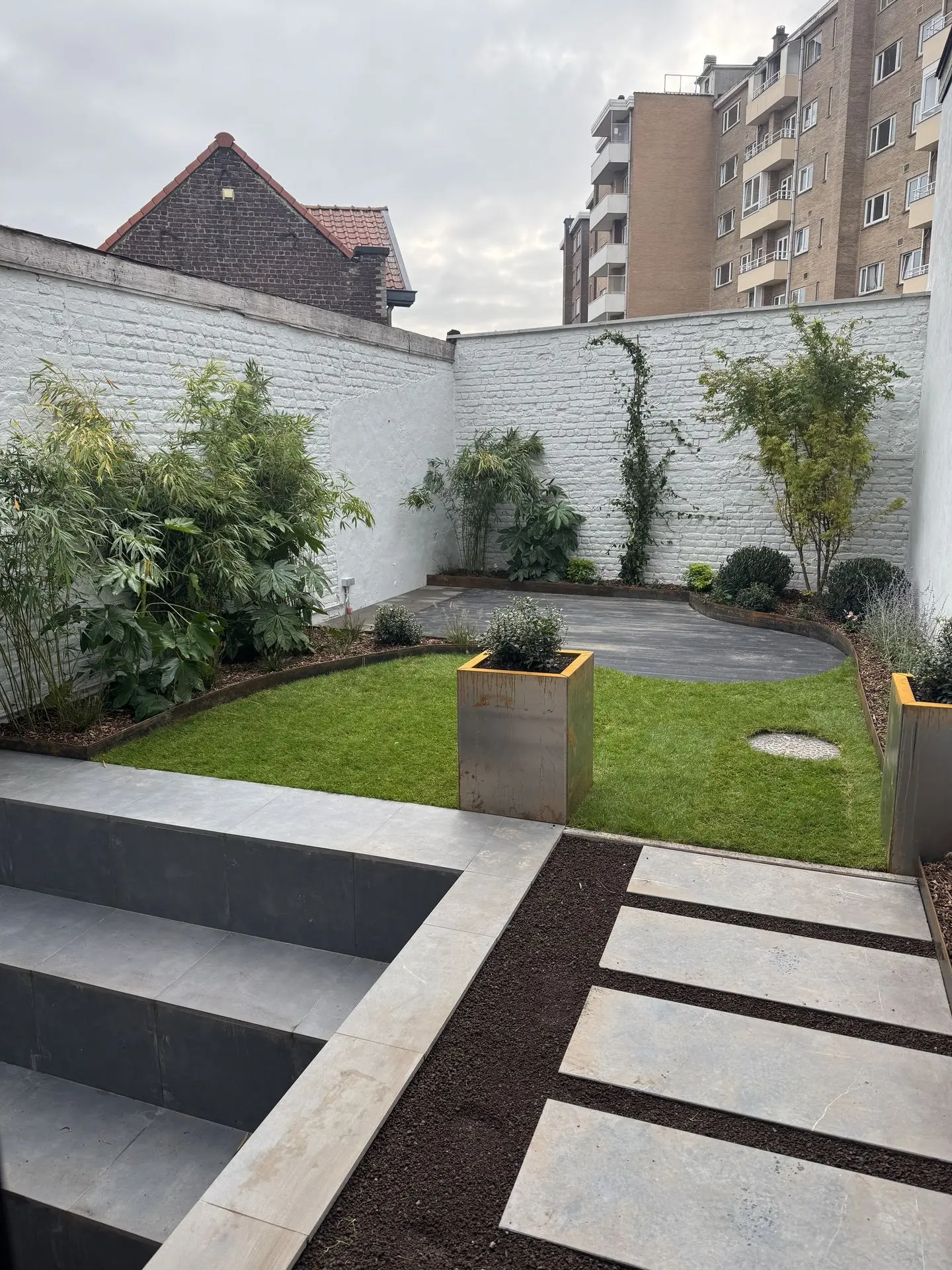Une terrasse n’est pas qu’une surface : elle peut devenir un véritable prolongement du jardin. En y intégrant des parterres, des plantations entre les dalles, des pots en terre cuite ou en acier corten, ainsi que des plantes grimpantes sur pergola, vous apportez vie, charme et saisonnalité à votre extérieur.